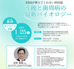 あの天野先生が、博多にくるばい!!2023年と2024年にAD Scientific Index世界研究者ランキング・Dentistry in Japan部門で第1位となった.難解なバイオロジーを易しく解説する軽妙な語り口が好評を博し、47都道府県全てで講演を行っていらっしゃいます。天野先生より「口腔疾患はEBMだけでは語れません。健口を支えるナラティブなバイオロジーのお話をしたいと思います。」